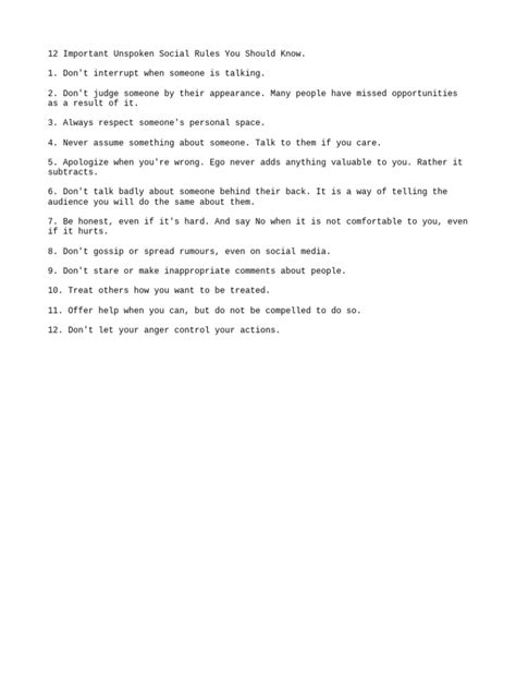 Unspoken Rules Of Relationships