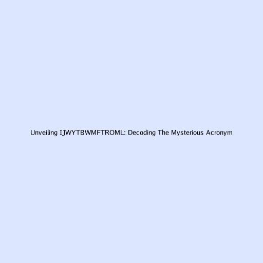 Unveiling IJWYTBWMFTROML: Decoding The Mysterious Acronym
