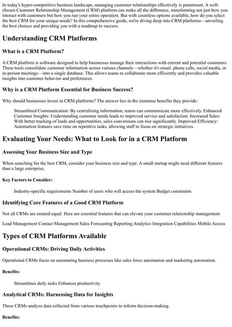 1. Assess Your Needs: Before you do anything, clearly define your business requirements and goals. What do you want to achieve with a CRM system? What features are essential? Identifying your needs beforehand ensures you choose a CRM system that aligns with your business goals.
