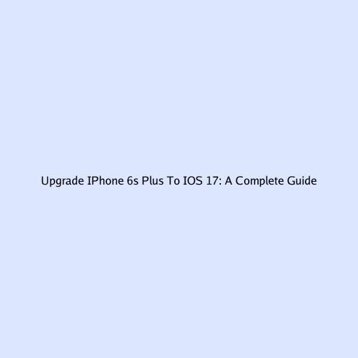 Upgrade IPhone 6s Plus To IOS 17: A Complete Guide