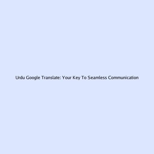 Urdu Google Translate: Your Key to Seamless Communication