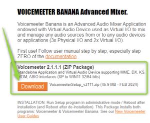 Downloading and Installing Voicemeeter Banana